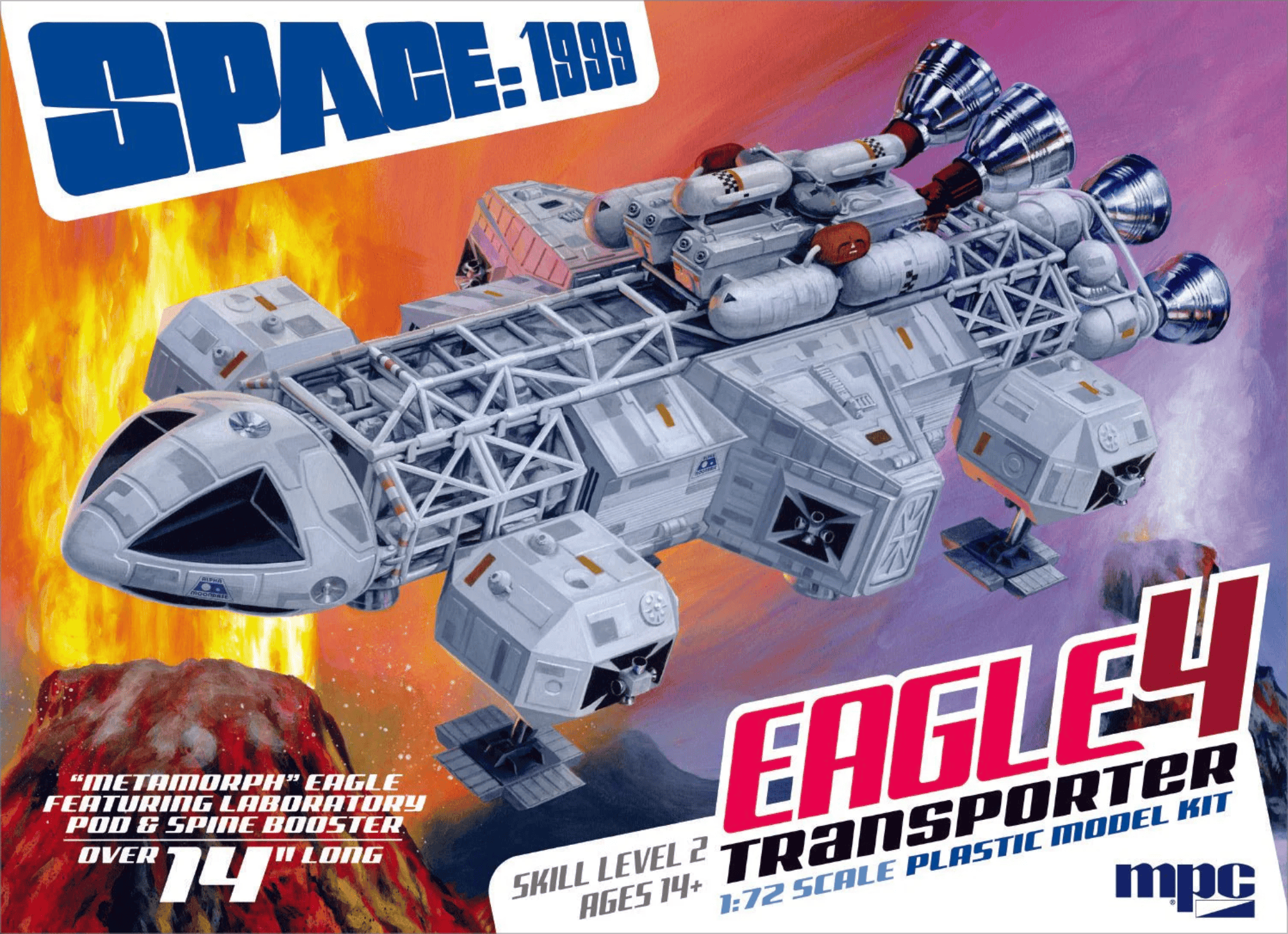 Description: This is an iconic spaceship kit: The opener to season two of Space:1999 introduced this fan-favorite variation of the Eagle Transporter. MPC builds onto its lineup of 14” Eagles by adding the popular “laboratory pod” along with the powerful spine booster.